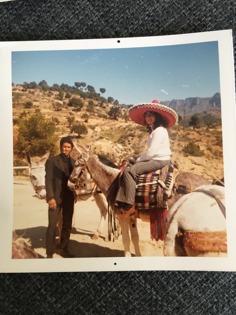 On the Sunday it was suggested that we go to the village of Guadalest, high in the mountains but very near to Benidorm. it sounded lovely, so we piled into a minibus and twenty minutes later we piled out again. To be confronted with a row of donkeys and mules. The only way to get to this village was by animal. (I have just looked it up – there is another way these days). My heart sank – even then I was not known for my sense of adventure – I was right out of my comfort zone – if only I had known that expression then! But my aunt and uncle jumped on to the beast presented to them without any ado, my mother took a deep breath and stunned me by very elegantly climbing onto her animal, so I had no way out. Unfortunately I didn’t have a clue how to get on – but the donkey owners were eager to help and more or less bundled me on. My stepfather had more of a problem. As he was rather large at the time, they had to go and find a bigger mule for him. But they did eventually return with a massive steed and on he got. I was so impressed with them all that I eventually forgot to be frightened.
