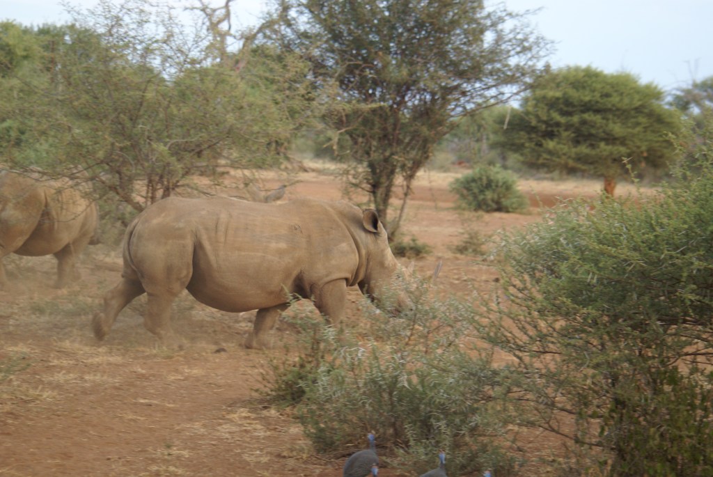 But the story didn’t end there. As he trotted after her, with her turning every few seconds to see if he was still there, we suddenly saw three little baby rhinos emerging and following them. No photos though, unfortunately.