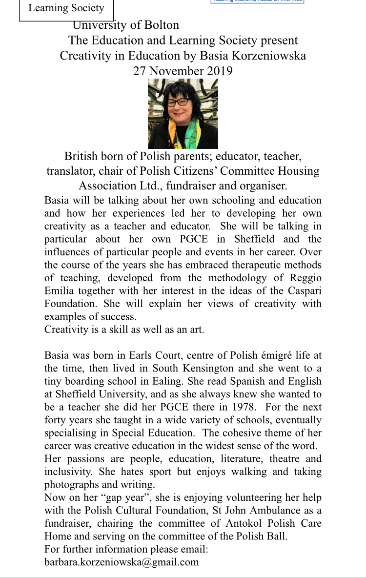 Last week I did something I never thought I would be able to do – mainly because I thought I would never have the opportunity, but also because I did not know if I would have the confidence or the knowledge. So when I saw the poster above my heart was in my mouth, but I thought I had better get on with it. My eldest daughter had invited me to to give a talk on creativity to her fellow PGCE students at Bolton University and in a fit of enthusiasm and pride I agreed.