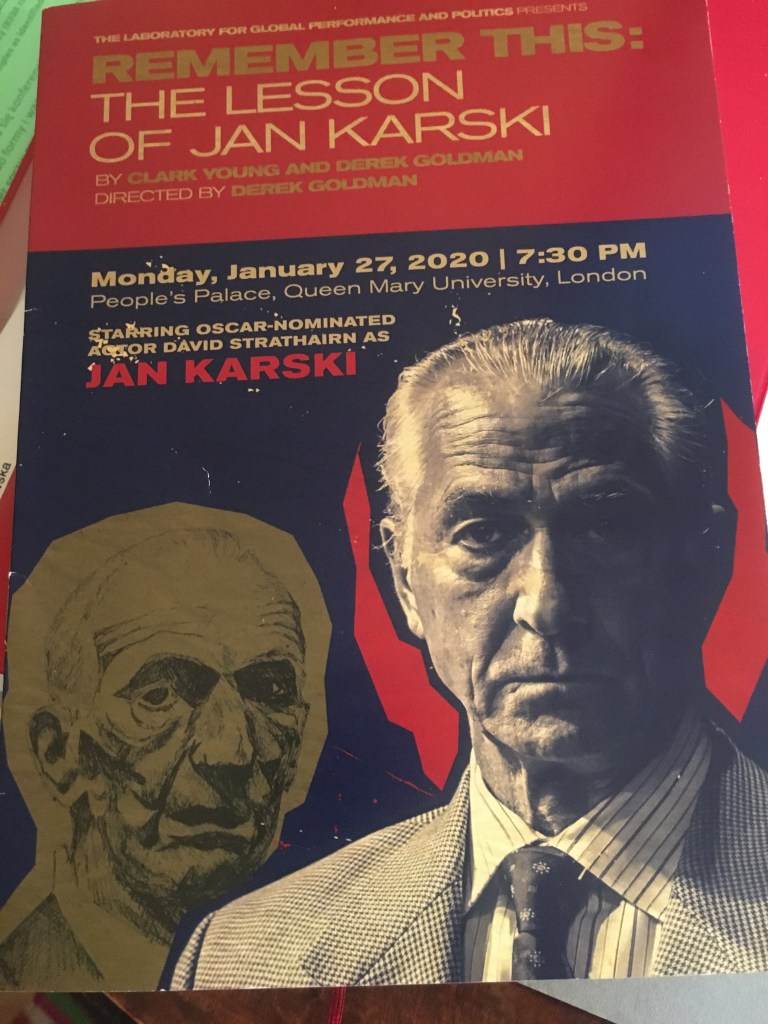 David Strathairn’s performance encapsulated the man in his entirety. You couldn’t hear a pin drop throughout the show – all eyes were riveted to the stage. People who were at this performance who had actually known Jan Karski were astounded by how “like” he was.