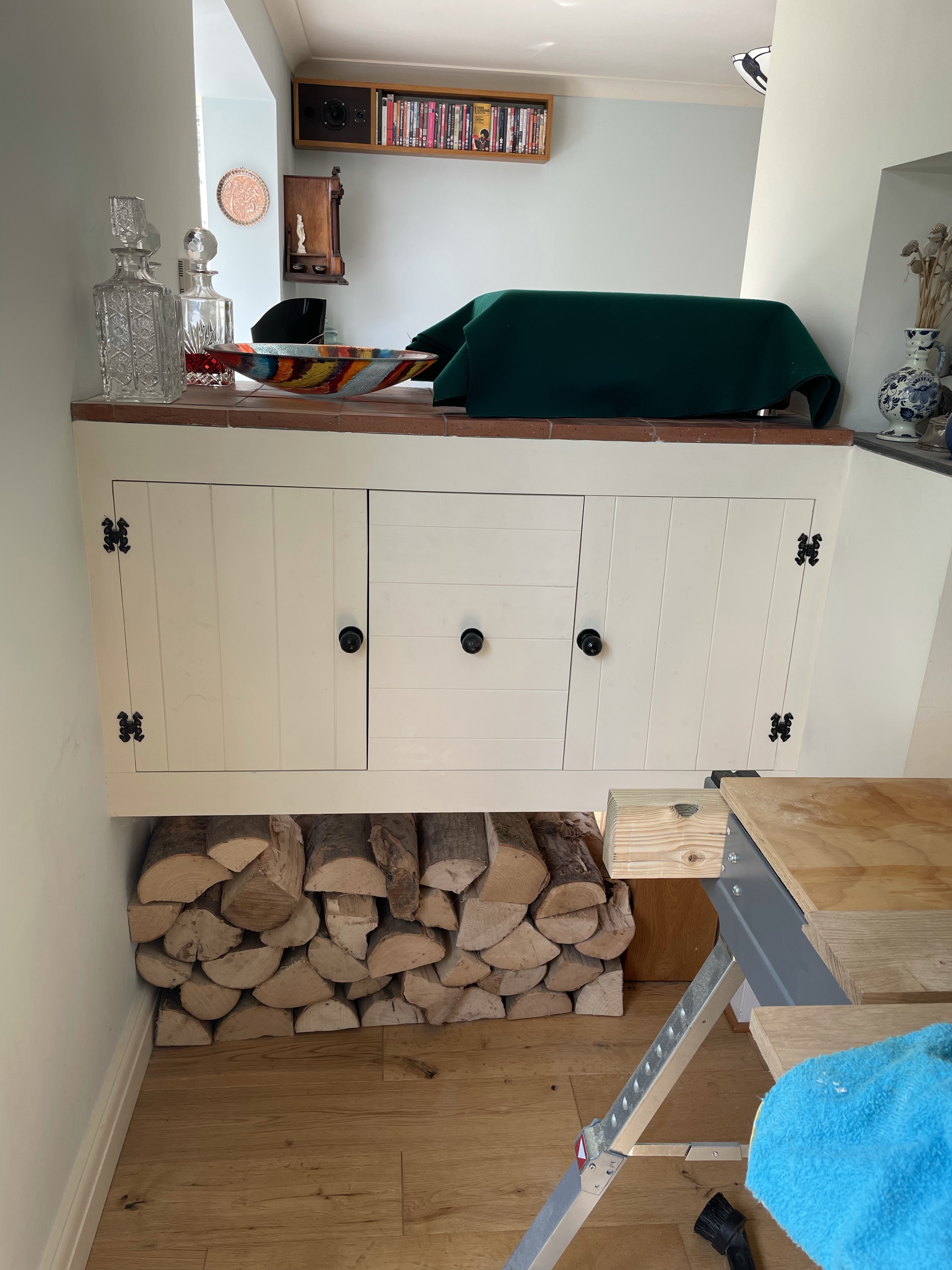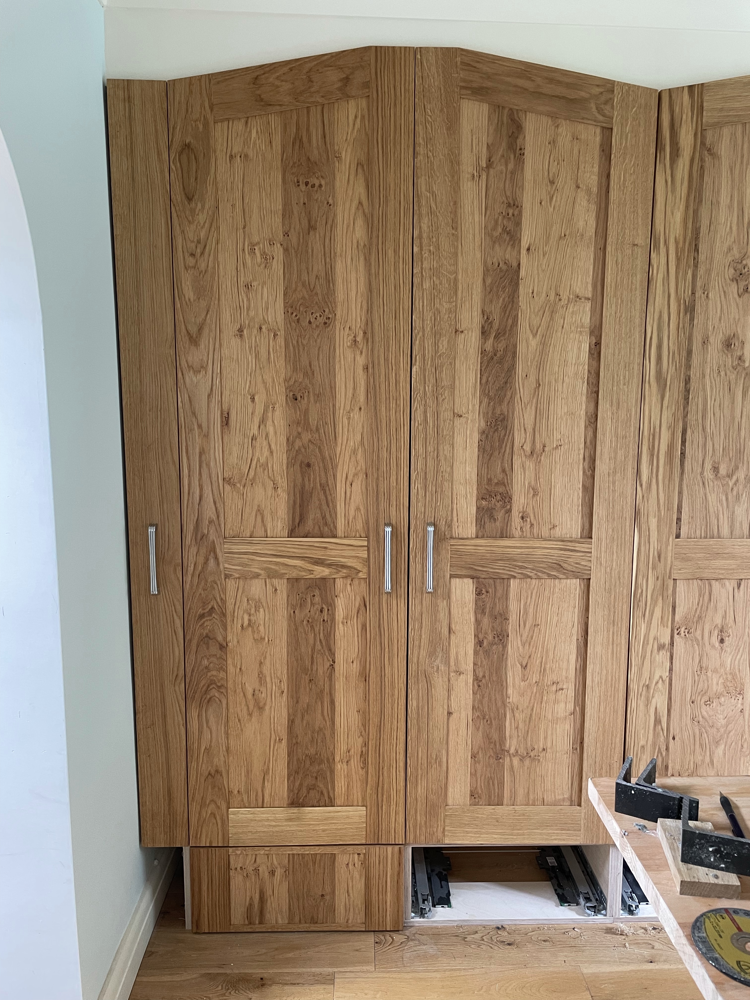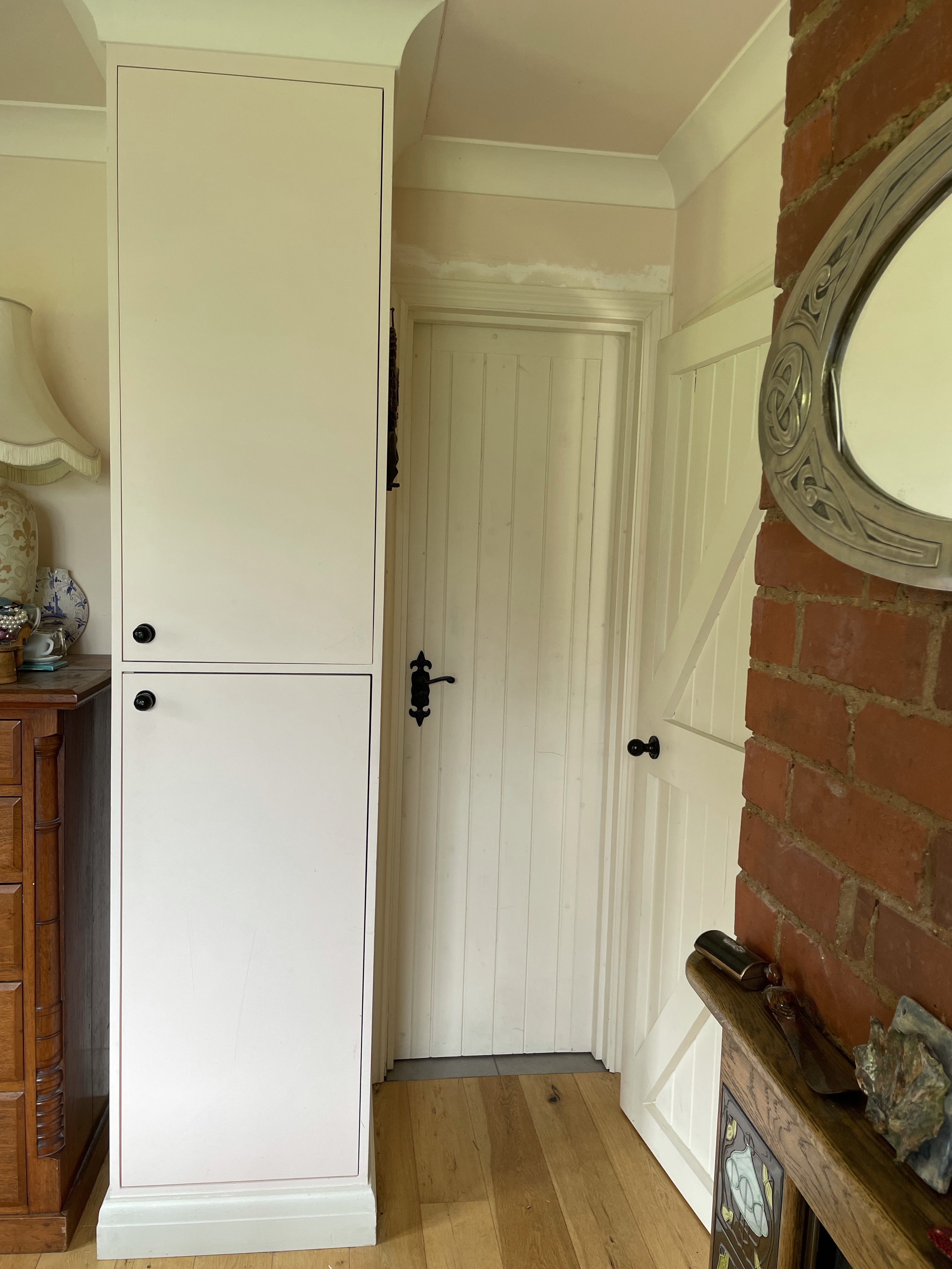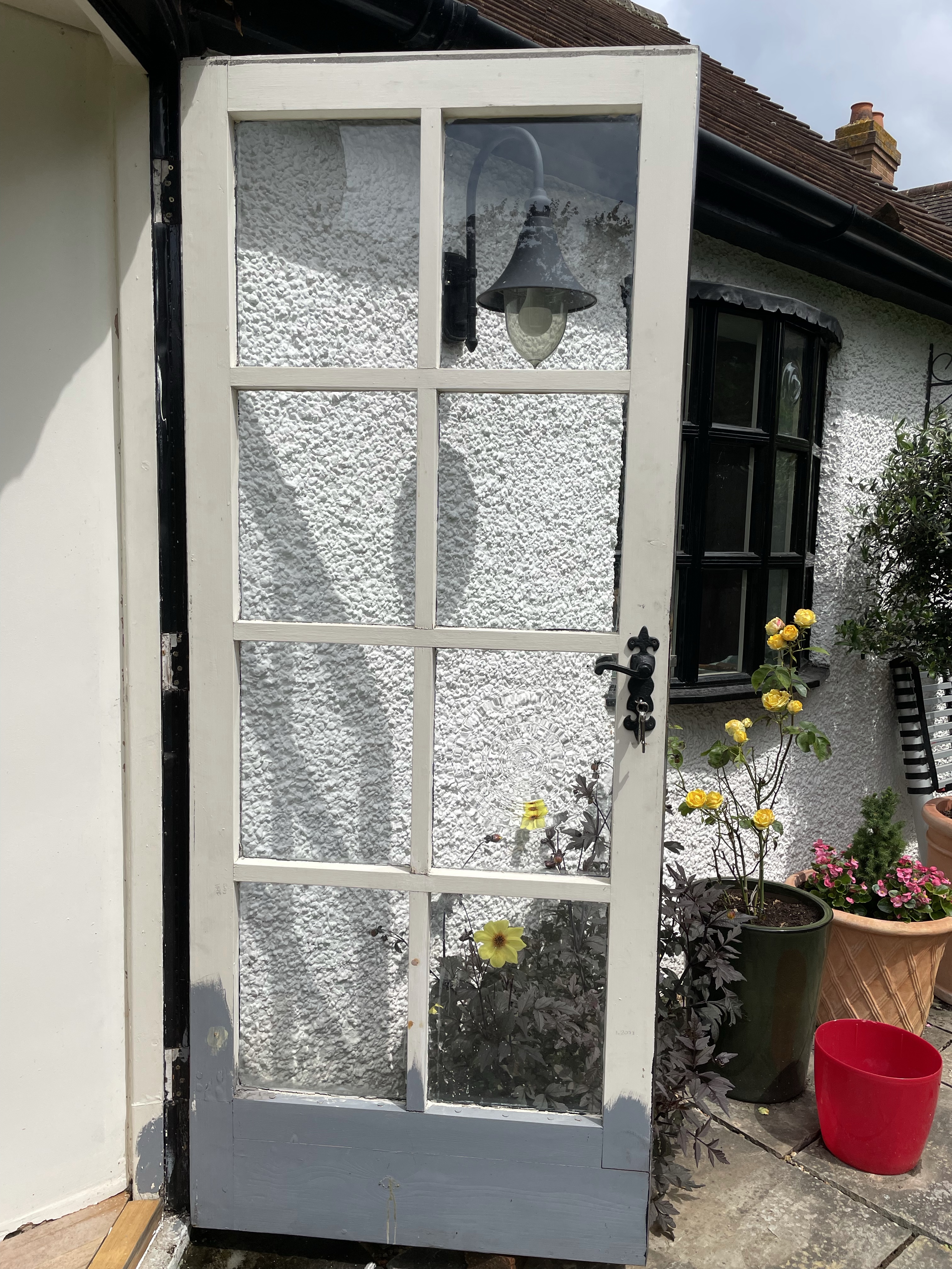 A handmade wardrobe door. Note that it is inset. Then two original doors from the cottage which was built in1934.