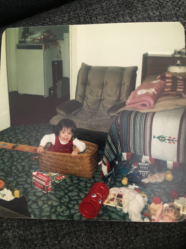 Kasia is sitting in a basket which belonged to my grandmother who kept all her pots and pans and cutlery in it when I was small. Somehow I inherited it well before I even went to university in 72 and kept it for many years after she died in 1988. This picture was taken in 1982. I no longer have it, however, as my husband threw it out in a rare fit of decluttering. I am glad I still have the photo, as it was a strange shape and size. But it made a good canoe for the baby.