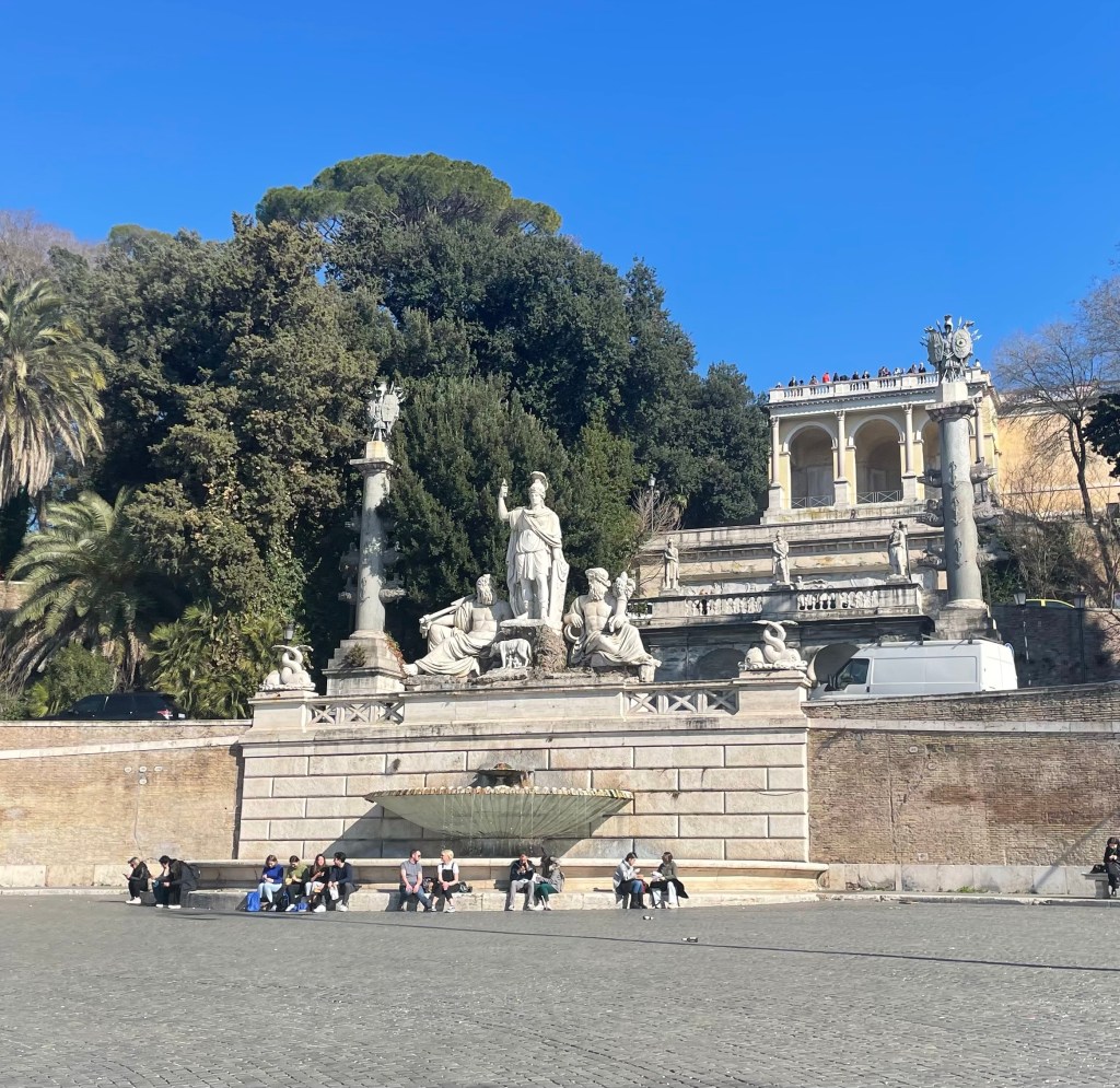 All of a sudden it was very quiet. Not like at the Trevi fountain. I had forgotten how enormous it is. No chance of throwing any coins into it. The place was almost besieged by tourists. And us. We are tourists too. We squeezed into a gap to take the photo.