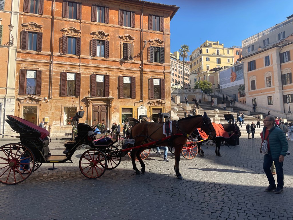 I’m sure there was an ancient American Express office somewhere here but it seems to have disappeared. But Keats and Shelley’s house is still there. We decided not to do the touristy thing and so we didn’t succumb to a carriage ride. We plodded on….