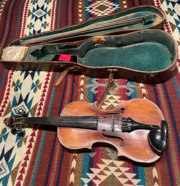 But the fiddle is mine – it is split and can’t be played – he never had it mended – too expensive, and I shan’t either as no-one can play it. It’s not quite a Stradivarius, and not worth anything to anyone except me.