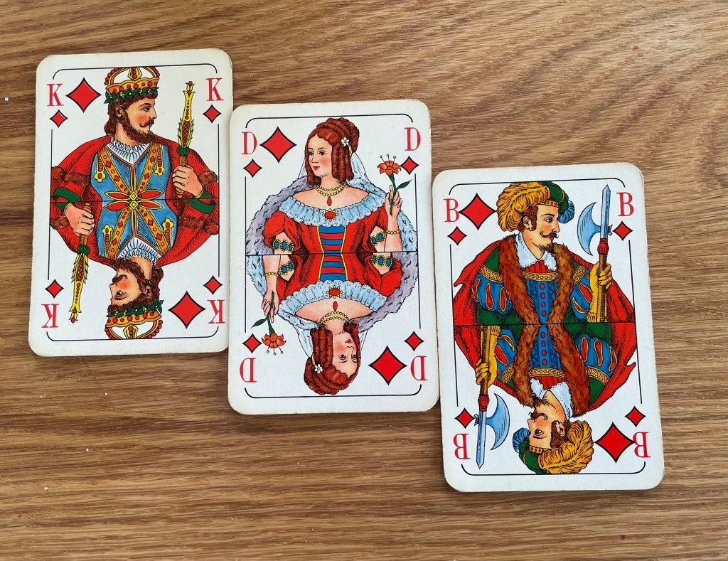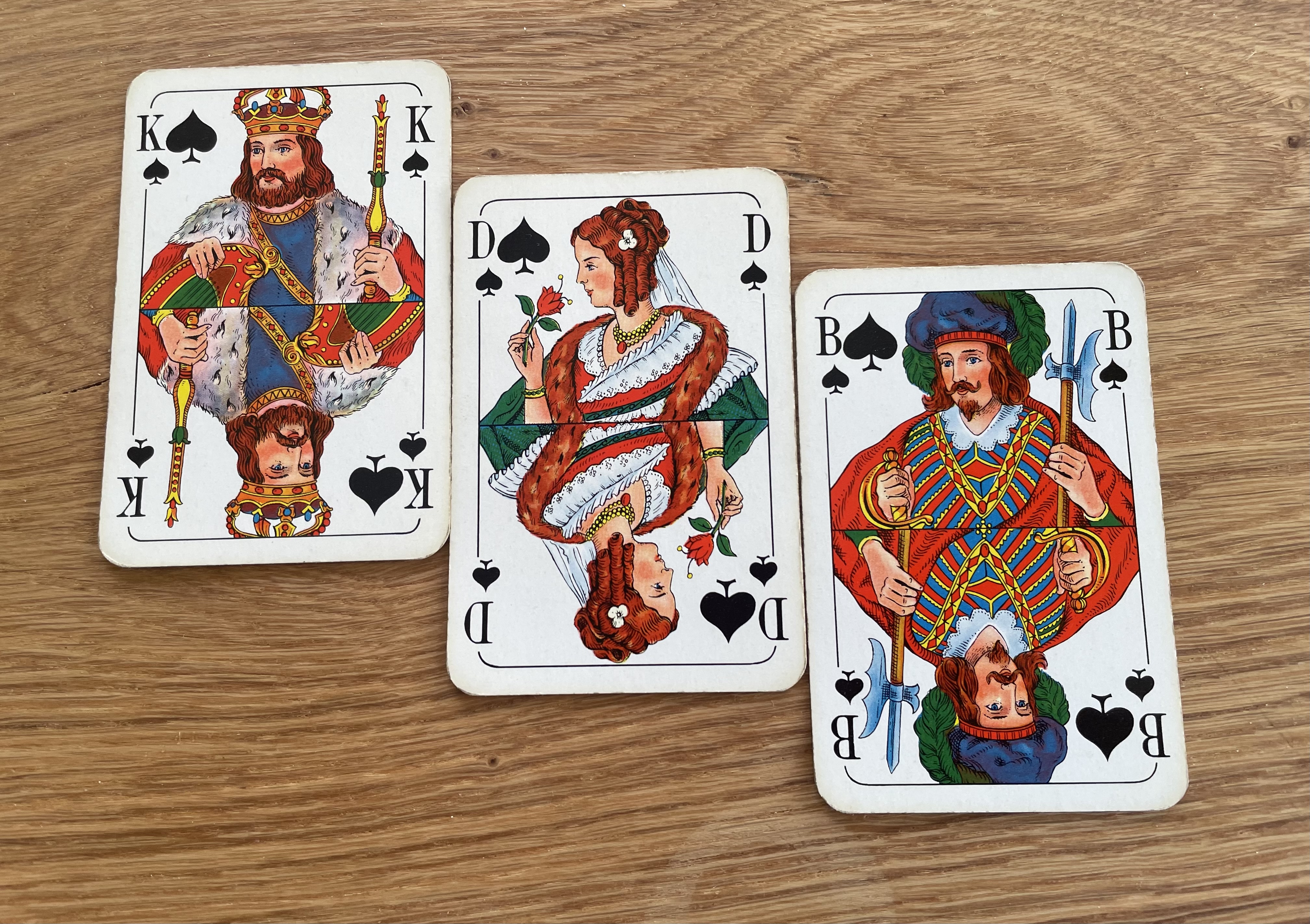 Thanks for the reminder, Tony. Of course I knew the word; it just didn’t appear in my brain. The cards themselves are German or Austrian. So the B stands for bube. Boy in Polish the Jack or knave is walet , valet