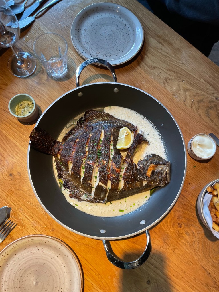 The first night we were there ( we came a day early) we went to a local fish restaurant. It turned out that this was the same place we were going to the next day for lunch. No matter. The turbot was delicious. The usp of the restaurant was that you chose your fish in the “market” before you sat down. Then you were given a bucket with your wine bottle to take to the table.