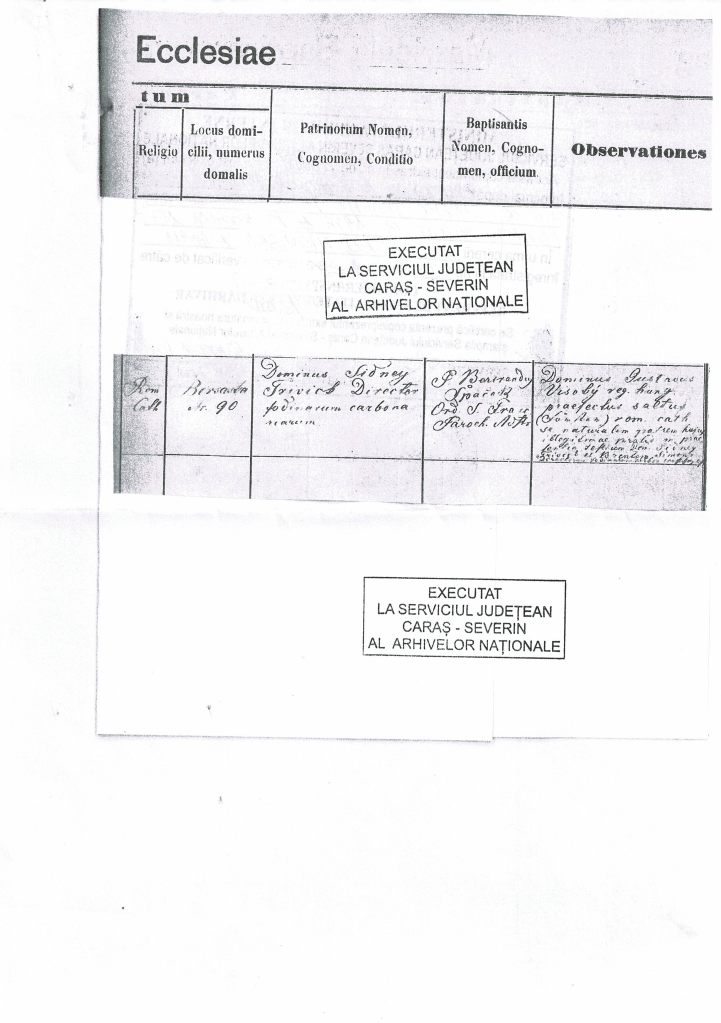 I was baptised on the 2nd February 1879 on Sunday at 4 pm by the priest Bertrand Spaček from the diocese Weizenried in Berzasca   My godfather, Sidney Trivick, an Englishman, was the director of the Kozla) mine which was situated near the station of the inland waterway Dreszkewo   As he was a member of the Anglosaxon Church he had to learn the Our Father etc before my baptism .