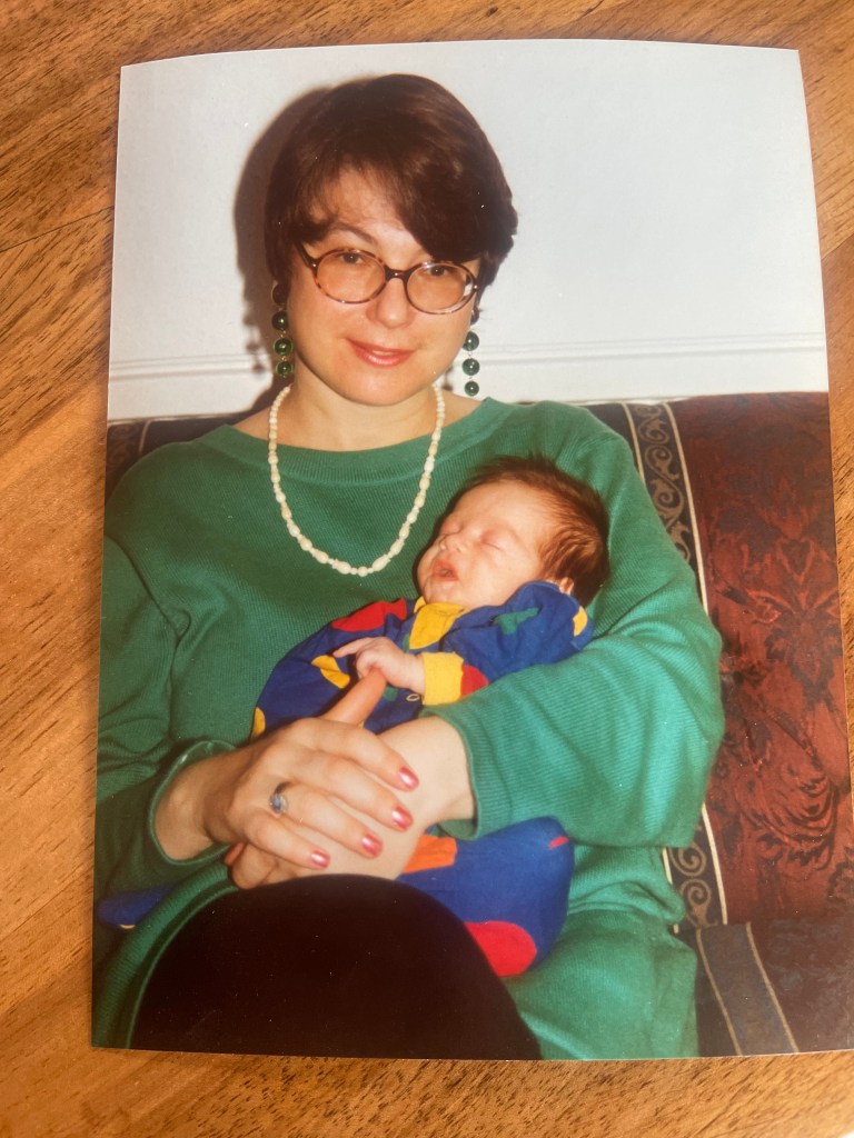 Here I am on our fabulous sofa, with my thirdborn, my autumn leaf, (more about that later) when she is six weeks old. I believe we dressed her up specially for this portrait, as she is in my favourite little outfit. She has grown quite a bit since she was born – she was so tiny, that even her crying sounded like the mewling of a hamster – she wasn’t much bigger really: but then she grew. And grew. Not too much though. Just enough to keep the health visitor happy.