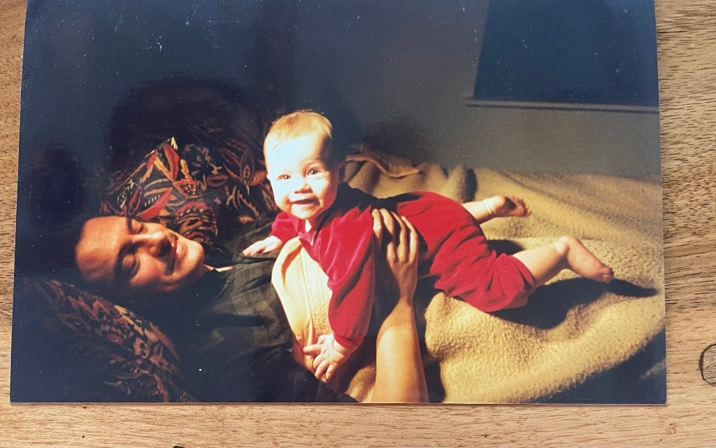 Here’s the comfortable sofa bed again. My mother is relearning all her maternal skills and has been persuaded not to smoke while holding the baby. She weighed 5 lbs when she was born and I think this is a few days after she left the hospital. We’re all still in a state of wonder.