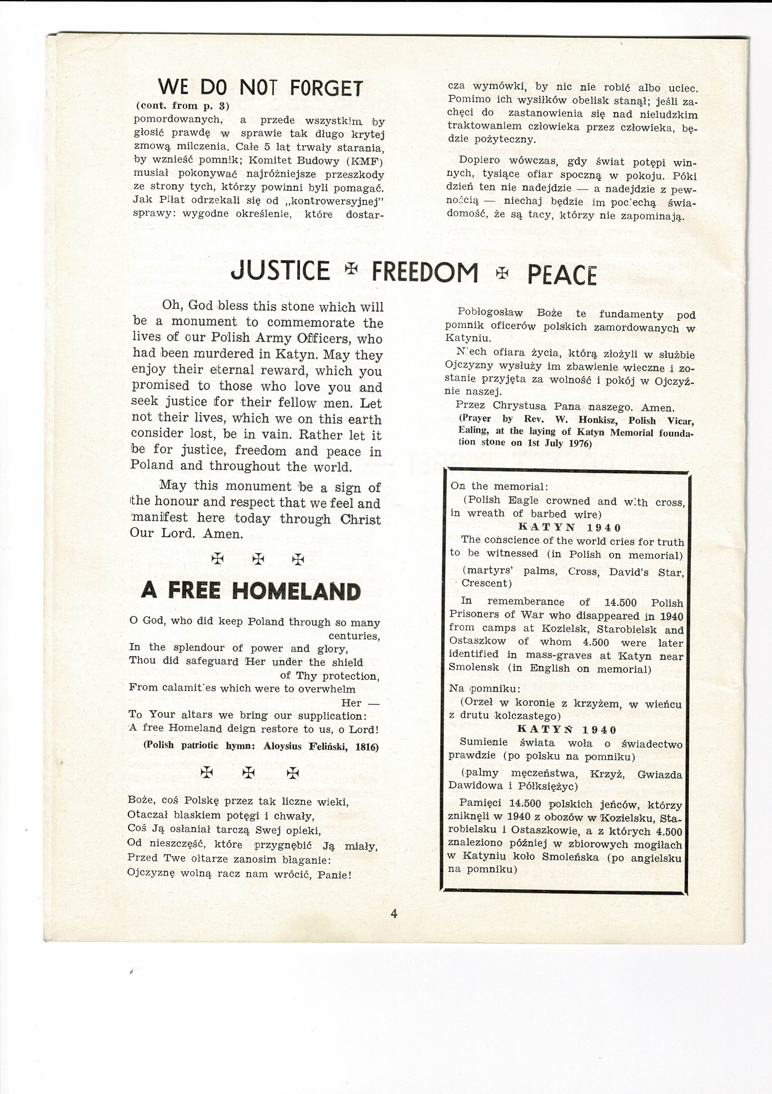 For years the western world refused to accept that this was a Soviet atrocity, and finding a place for the memorial was an enormous logistical and political task. When the graves were found, originally the Soviets accused the Nazis of committing the murders. For various reasons of expediency the British were loth to accuse the Soviets and it was not until the 1990’s that the Russians admitted anything. This has all now been well documented, and films have been made to show the horrors. (The Last Witness, Piotr Szkopia:, Katyń, Andrzej Wajda) I don’t need to go into that here, except to remind people that it is because of those deportations to the Soviet Union in 1940 that my family and thousands of others are still living in England.