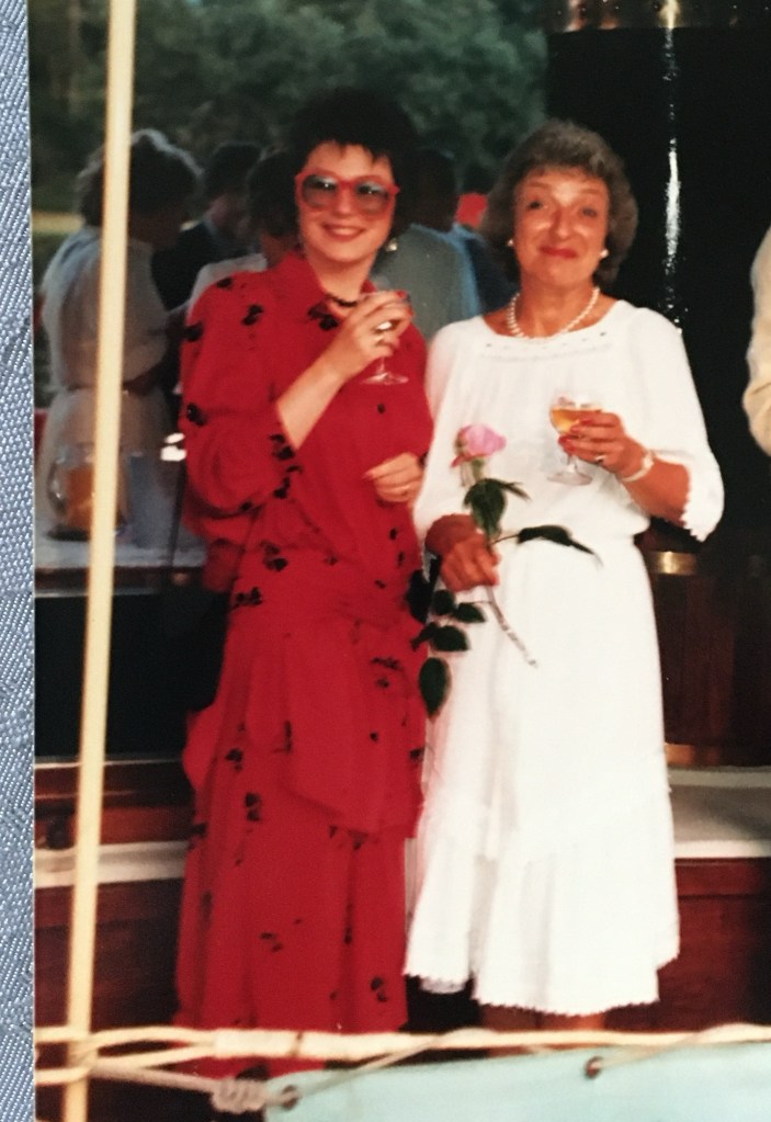 Then a few years ago, after I inherited her cottage and we were sorting out her attic, we came across the present we gave her – and many if not all the other gifts she received, duly listed and labelled. I’d known she was organised but not that organised! She treasured her family and her friendships immensely. that tall thin woman in red is me, by the way, in 1986!