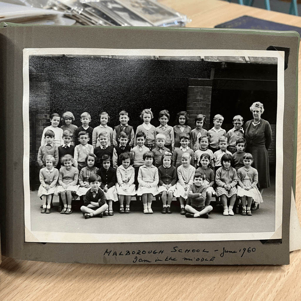 So- the photo tells me 1960, so this must be just before I went up the junior school. I remember most of these children, but not all. I don’t know who the little boys are right in the front, but the front row, left to right are Sheila, ??, Susan, Shamza, Susan, me, Beryl, ?? and my mind has gone blank.The teacher is Mrs Edwards.