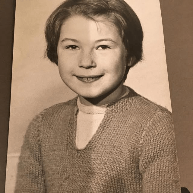 One thing I do remember is having to pose for a school photo one day. I was normally a very good child, but my mother dressed me in a lovely blue dress that she had knitted herself and I remember I was fascinated by the texture of the stitches. so before we went to school I found a pair of scissors and gently snipped at the front of the dress and watched as the stitches bounced apart. I remember it being great fun until I was caught. Cross is an understatement. I shudder, even now. I don’t know if she actually knew I was going to have my photo taken but she left me in the dress. You can see some of the cut stitches if you look really carefully.