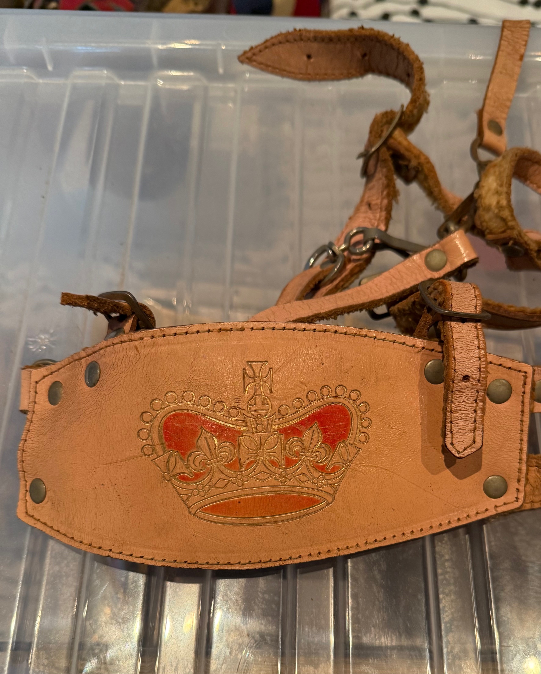 The attic yielded many finds last week. This was one of the best. I really wanted to find this article two years ago, for the 70th jubilee of the coronation (Queen Elizabeth’s, of course), as I was born in 1953. My father must have bought these reins that year, ready for me when I eventually started walking. I believe he and my mother had a very long wait, as I was practically inert until I was about 18 months old. ( I can hear some of you thinking how little has changed…)