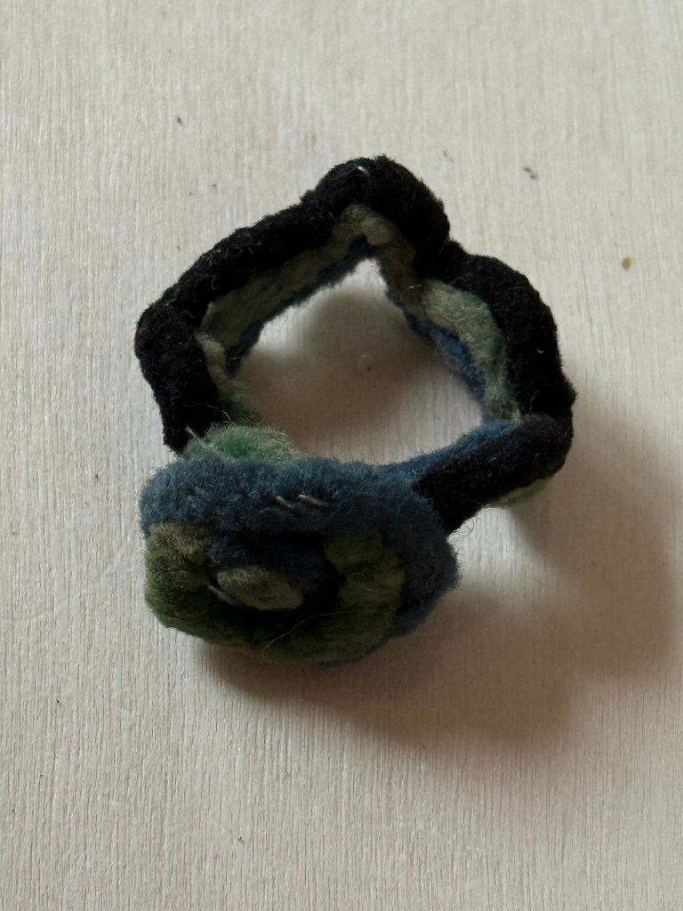 When I got there his flat mate and colleague was also there, John Hall, who turned out to be a fascinating person. Very charming and very creative. I seem to recall spending quite a bit of time in their flat in the ensuing weeks, (they fed me well) and at some point John made me the ring in the photos out of pipe cleaners.
